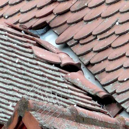Durch Sturm heruntergefallene Firstziegel